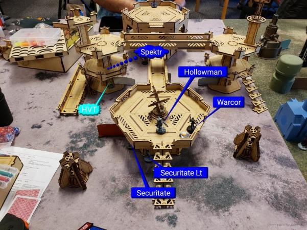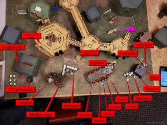 From the table we were playing, I knew that I would want my Riot Grrls for all of the Low Vis zones. I also knew that I wanted to go second on Transmission Matrix, so I took deployment and had my opponent deploy first. He chose to go first, so mission accomplished.