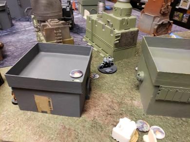 I’ve really enjoyed some of the terrain our store has for it’s games. The mix of rocks and catwalks gives a nice feel that this could be the inside of an asteroid. The three level set up we had provided some nice tactical layering to think about. Unfortunately I didn’t have any hollow men to make the most of mobility between levels. I chose to go first and was assigned the side at the bottom of this picture.
