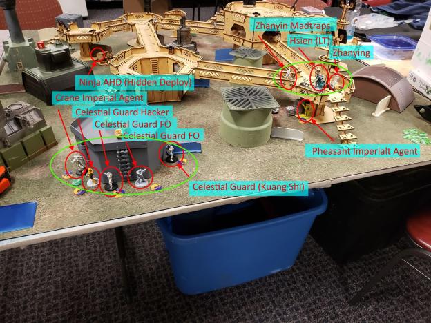 Like what the Warcors and some of the more experienced players say, a game of Infinity has four turns, with deployment being turn one. I definitely messed up portions of my deployment here and that influenced how close this game was. It has been a while since I have used Bran, and I forgot how reliably he can over infiltrate. Bran should have been my reserve piece as an extra punch, instead of having him down first and shaping all of DoodleKing’s deployment.